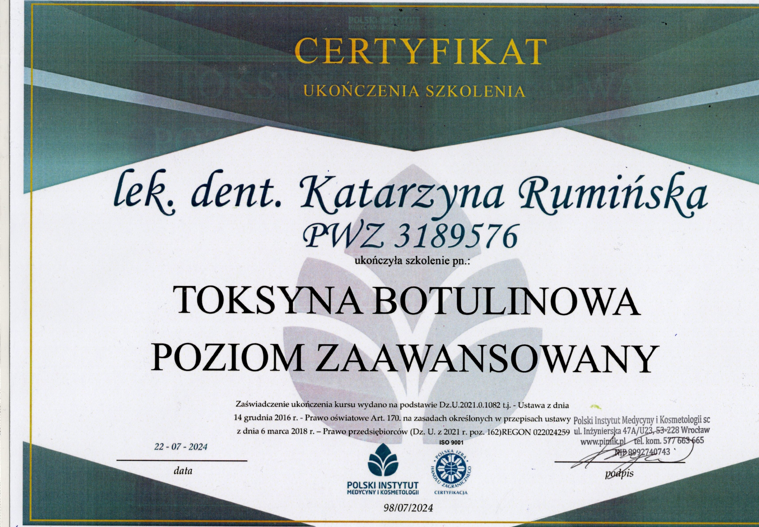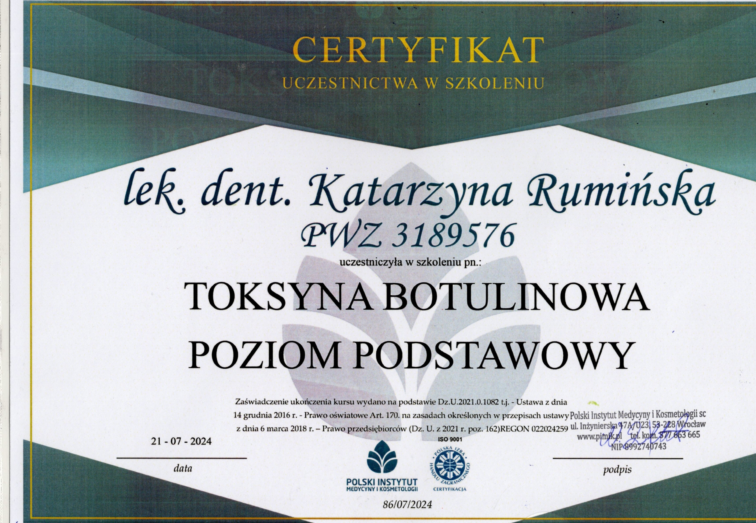 Professionally, I find the greatest satisfaction in performing endodontic treatment under a microscope. I also deal with conservative and prosthetic dentistry and perform procedures under inhalation sedation for both children and adults. I conduct aesthetic medicine procedures, such as botulinum toxin injections, helping patients who suffer from tension-type headaches or bruxism. I constantly expand my knowledge and skills by attending courses and conferences. In my free time, I actively spend time with my loved ones.